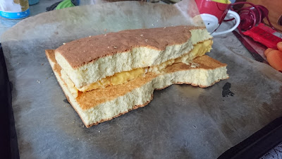 還好家裡兩隻小獸還是很樂意幫忙把變成三明治的蛋糕處理掉。